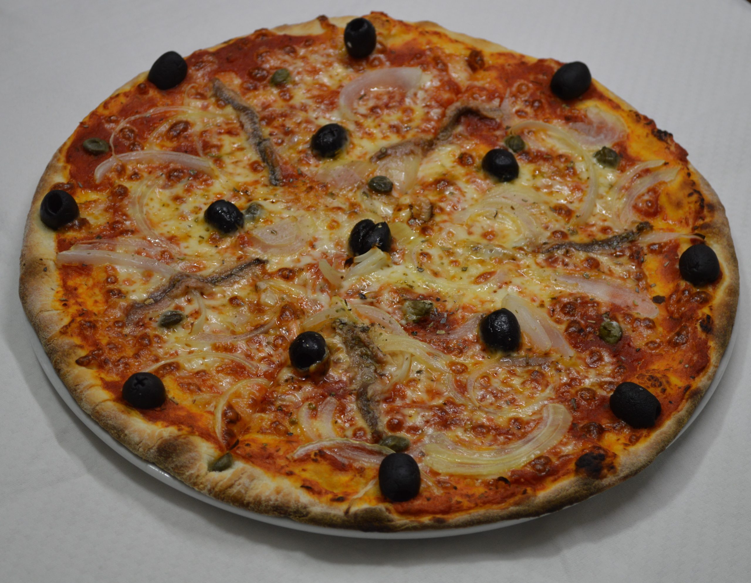 paradicsom, mozzarella, szardella, kapribogyó, olívabogyó, hagyma